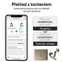 Funkcia BoostClean na izoláciu šumu a 4kanálové spracovanie TurboFast filtrujú rušivé vplyvy v reálnom čase, umožňujú okamžitú odozvu a zabezpečujú, že každé slovo znie s krištáľovou čistotou. AI vďaka pochopeniu kontextu dokáže okamžite rozpoznať podobne znejúce slová a vyhnúť sa tak nepríjemným chybám. Pri rýchlych prejavoch alebo živých prezentáciách v práci identifikuje technológia AI sémantickú segmentáciu prirodzených pauz v dlhých prejavoch. Preklad začína už po jednej vete, sleduje obsah konverzácie a nevyrušia ho ani dlhšie prestávky. Rovnako ako ľudský tlmočník. Vaše konverzácie zostanú prehľadne uložené a vždy pripravené na ďalšie použitie. V aplikácii nájdete aj ďalšie funkcie ako napríklad vlastného jazykového kouča.