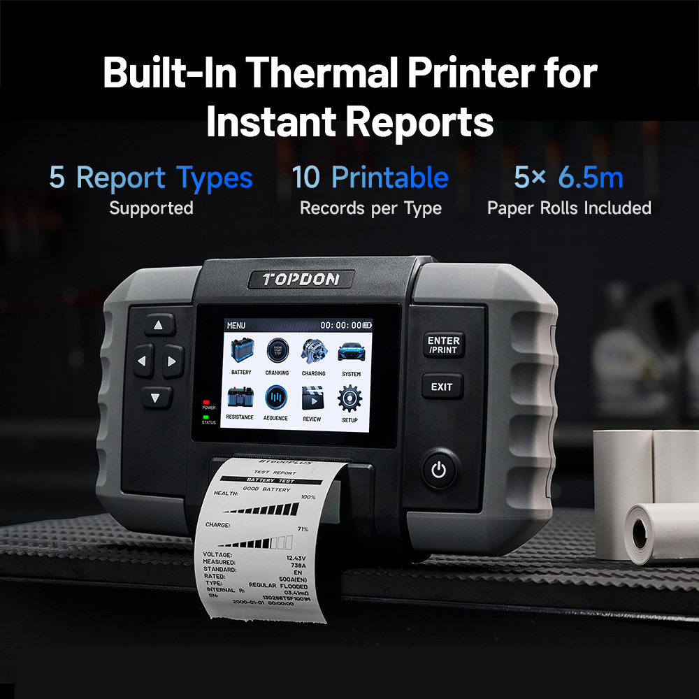 BT600 Plus je profesionální tester autobaterií od značky TOPDON s barevným 3,5" displejem a vestavěnou baterií pro samostatný provoz. Rychle a přesně vyhodnotí stav 6V, 12V a 24V baterií, analyzuje startovací i nabíjecí systém a umožňuje záznam až 10 t...