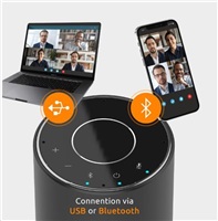 Pripojte konferenčný reproduktor Toucan cez Bluetooth k smartfónu alebo tabletu alebo cez Bluetooth alebo USB k počítaču. Jednoduché pripojenie plug-and-play je intuitívne a ľahko sa používa.