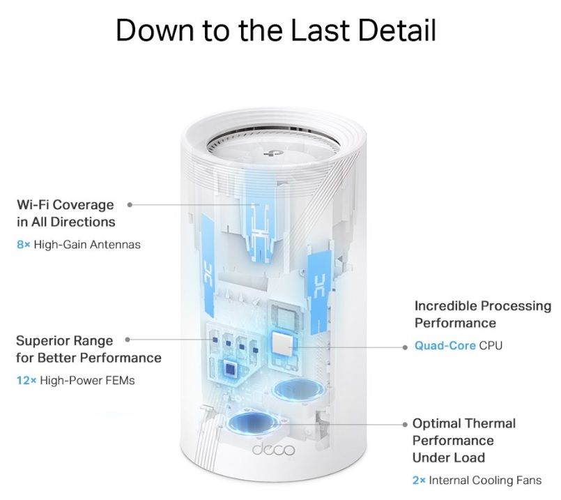Deco BE85(2-pack) BE22000 Domácí meshový systém TP-Link Mesh Technologie *Zabiják mrtvých zón Wi-Fi *Zbavte se míst se slabým signálem pomocí jediné Wi-Fi sítě, která pokryje každý kout vaší domácnosti funkcí bezproblémového roamingu, adaptivního směro...