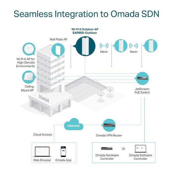 TP-Link Omada EAP650-Outdoor V1 - Bezdrátový access point - Wi-Fi 6 - 2.4 GHz, 5 GHz - spravování cloudem - montáž na stěnu / tyčBezdrátový access point - Wi-Fi 6 - 2.4 GHz, 5 GHz - spravování cloudem - montáž na stěnu / tyč