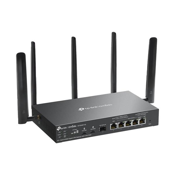 TP-LINK "Omada 4G+ Cat6 AX3000 Gigabit VPN Gateway with 4-Port PoE+PORT: 1× Gigabit SFP WAN/LAN Port, 1× Giga ER706WP-4G