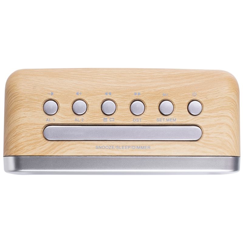 Radiobudík, retro design, FM tuner, duální budík, kalendář, stmívatelný display, stříbrno - hnědá