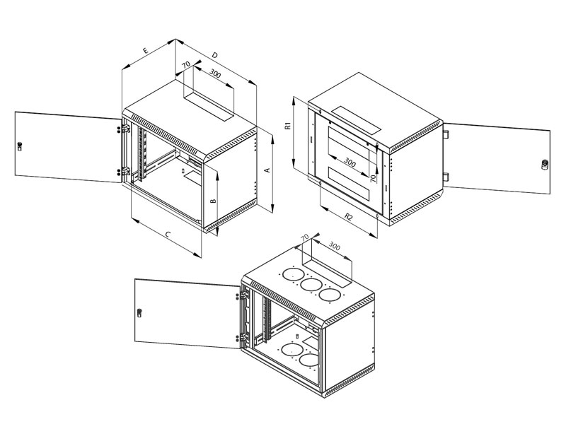 • 19“ jednodílný nástěnný rozvaděč s krytím IP 30