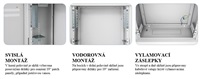 Hybridní rozvaděčová skříň pro realizaci domovních datových a silových rozvodů s krytím IP20 a nosností 30 kg. V horní polovině je skříň vybavena posuvnými držáky pro osazení 4U 19" patch panely, na bocích v dolních polovině jsou připraveny držáky pro 2U 19" zařízení.