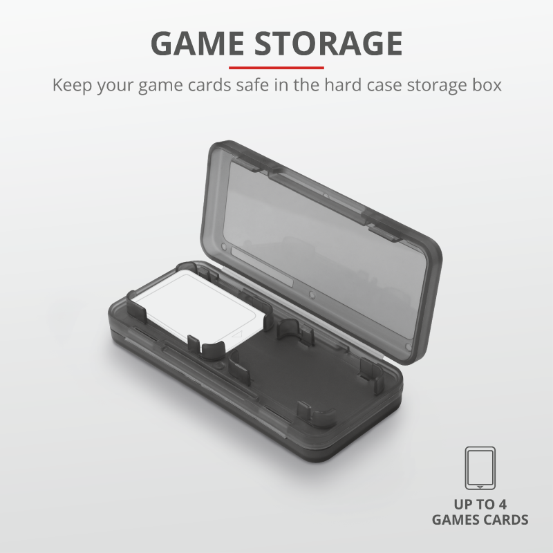 *Tvrdé pouzdro absorbující nárazy, které přenáší a chrání vaši konzoli *Pouzdro obsahuje síťovou kapsu pro oddělené uložení příslušenství. *Chránič obrazovky ze skla, který zabraňuje poškrábání na displeji *Čištění obrazovky suchým a vlhkým hadříkem a ...