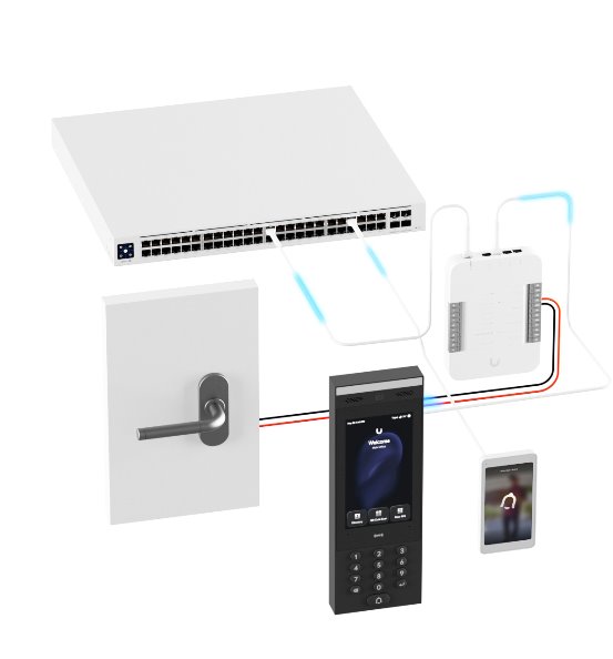 Unlock using Apple Wallet or an NFC card or UniFi Identity mobile app, face unlock and Touch Pass*