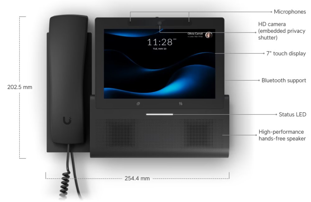 Next-generation wall-mountable smartphone for UniFi Talk, featuring a 7" touch display and seamless integration with UniFi applications.