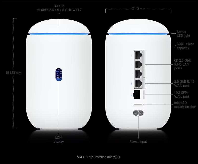 Ubiquiti UniFi Dream Router (WIFI7 + switch POE + controller + 64GB SD card storage) UDR7
