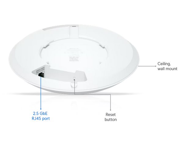 Compact, ceiling-mount WiFi 7 AP with 5 spatial streams and extended signal range.
