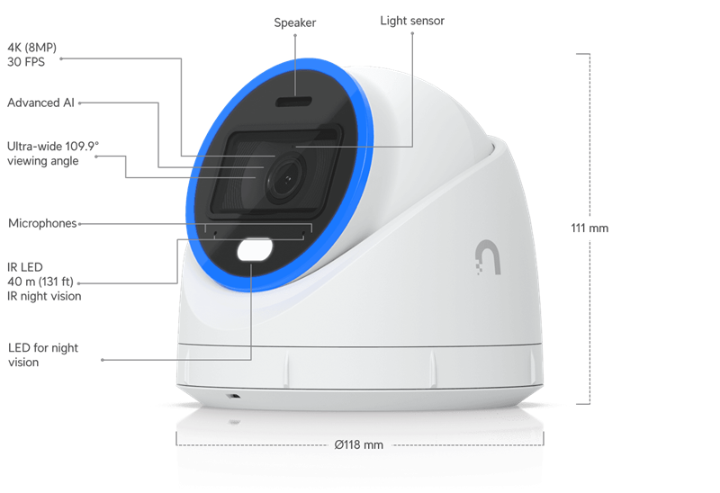 Ubiquiti UniFi Video Camera AI Turret (8MP, 3840*2160/30 sn, 134,1st) UVC-AI-Turret-W