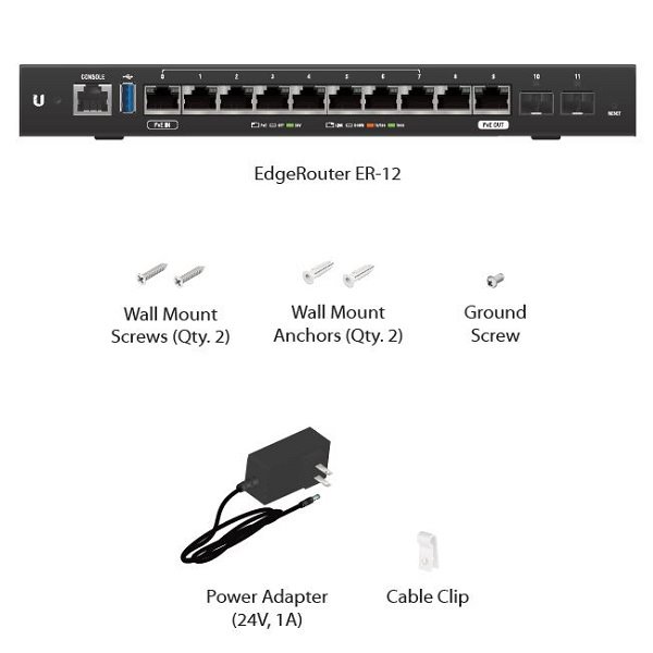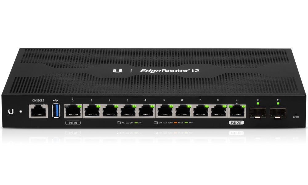 Popis produktu The EdgeRouter 12 is a high-performance Gigabit Router with PoE flexibility. With increased performance over the previous generation of routers, the EdgeRouter 12 delivers up to 3.4 million pps for 64-byte packets.Ten Gigabit Ethernet po...