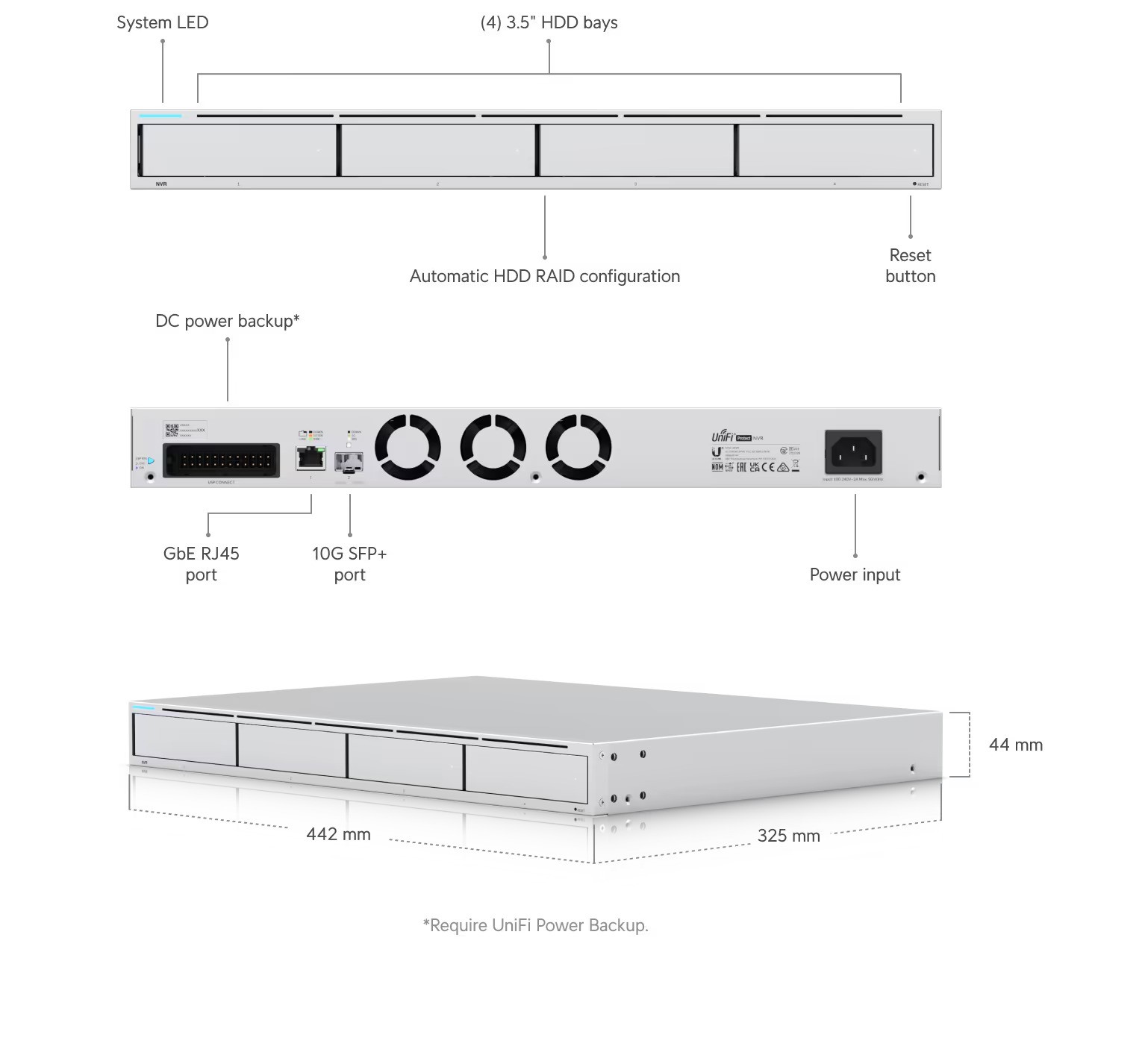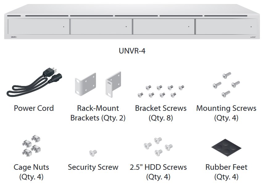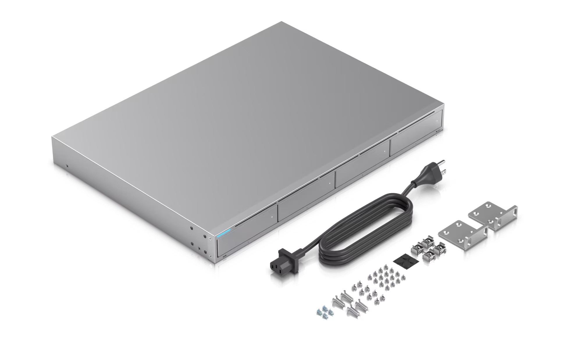 UBNT UniFi Protect NVR; Záznamové zařízení se čtyřmi 2,5/3,5" pozicemi pro disky, které můžou nahrávat až 30 dní 4K videozáznamu pro 15 kamer nebo Full HD pro 50 kamer. Disky jsou přístupné z předního panelu, t...