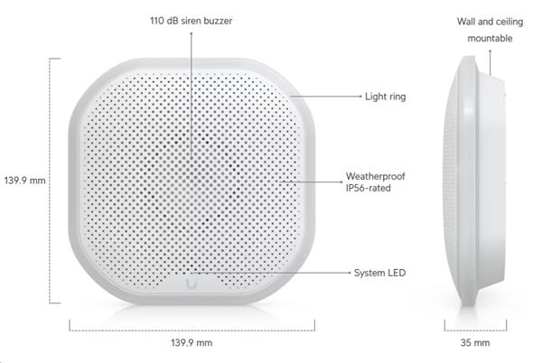 All-weather siren delivering 110dB alarm and emergency LED lighting powered using PoE input