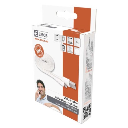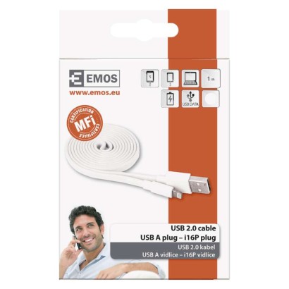 dĺžka: 1 m|ECO verzia: nie|farba: biela|konektory: A vidlica – i16P vidlica|materiál: PVC|maximálny nabíjací prúd: 2 A|použitie: nabíjanie/dáta|predajný obal: 1 ks, krabička|Quick Charge: nie|rýchlosť prenosu dát: 480 Mbit/s (High Speed)|USB verzia: 2.0