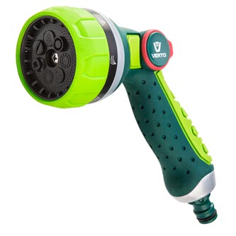 Pištoľový postrekovač značky Verto so 7 funkciami postreku. Postrekovač umožňuje nastavenie intenzity toku vody palcom. Ergonomická rukoväť skvele padne do ruky a nekĺže, čo zvyšuje komfort pri práci.