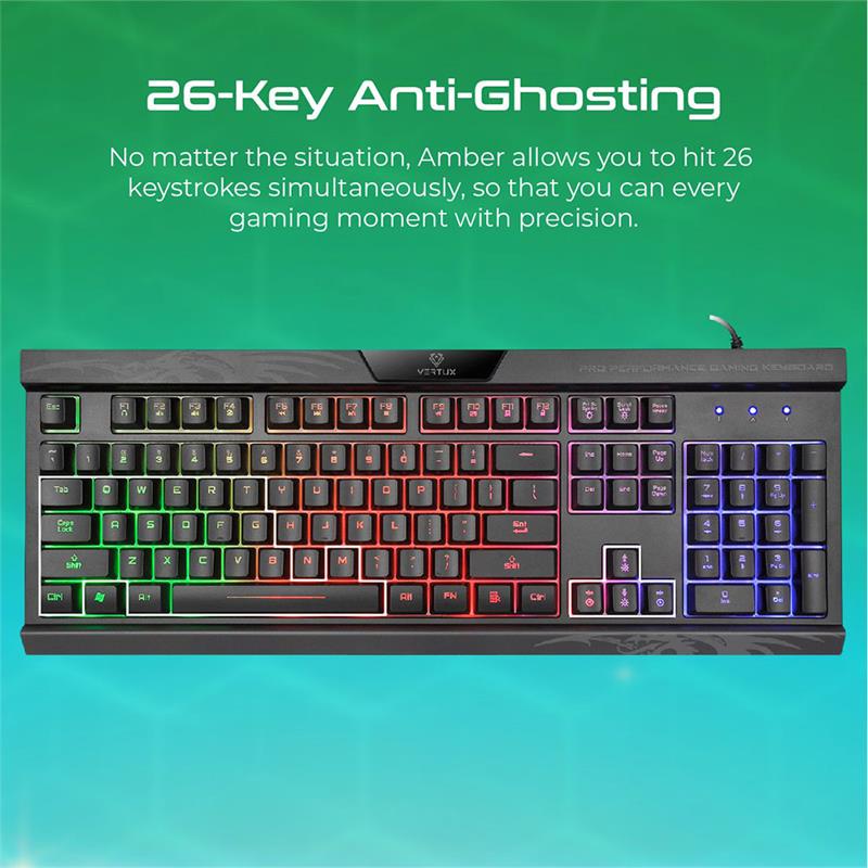 Vertux Gaming Amber Pro Performance Gaming Keyboard - Black (English) TASAMBER