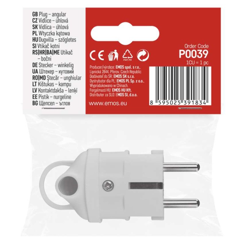 detské clonky: nie|diaľkový ovládač: nie|dosah signálu: neuvádza sa|easy learning: nie|farba: biela|krytie: IP20|materiál: plast|max. záťaž: neuvádza sa|možnosť ovládania: nie|napätie/prúd: 250 V~/16 A max.|počet pólov: neuvádza sa|počet zásuviek: neuvádza sa|pozície ochranného kontaktu: neuvádza sa|predajný obal: 1 ks, záves|prenosová frekvencia: nie|produkt: vidlica pre pohyblivý prívod, uhlová|typ: FRENCH/SCHUKO|vonkajšie použitie: nie|vypínač: nie