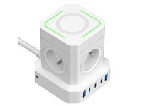 Síťový adaptér • zásuvka • rozbočovač • 4 × AC výstup (220–250V/16A) • 2 × USB-A (18W) • 3 × USB-C (až 100W) • celkový výkon 4000W • podpora kombinovaného nabíjení více zařízení • bezdrátové nabíjení 15W • odolné materiály a bezpečnostní prvky • délka ...