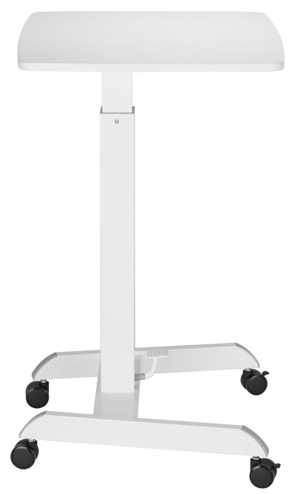 Výškově nastavitelná mobilní pracovní stanice/stolek. Pneumatický nožní pedál umožňuje nastavení výšky v rozsahu 752 až 1122 mm. Ideální do kanceláře, školy nebo učebny, konferenční místnosti, na školení či veletrh.