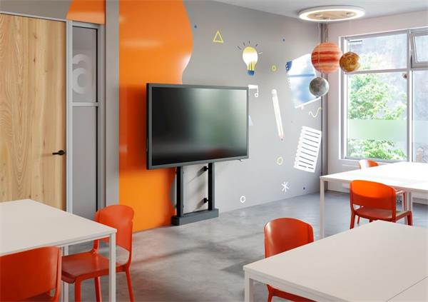 Podlahový stojan RISE 2005 s motorizovaným zdvihom a montážou na stenu je určený pre interaktívne ploché displeje s uhlopriečkou až 98" (max. nosnosť racku je 140 kg). Chcete na tento stojan umiestniť ešte väčší displej? Alebo je držiak VESA umiestnený mimo stredu displeja? Kontaktujte naše obchodné oddelenie, radi vám pomôžeme.