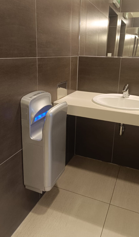 Rychlý a výkonný tryskový vysoušeč rukou Jet Dryer vysuší vaše mokré ruce během 10 sekund. Bezdotykový vysoušeč rukou se hodí zejména na toalety a všude tam, kde je potřeba dokonale osušit vlhké ruce. Díky podélným tryskám rozmístěným po obou stranách Jet Dryer vysuší dlaně teplým vzduchem během okamžiku. Ohřev vzduchu se zapíná automaticky dle okolní teploty nebo může být trvale vypnutý.