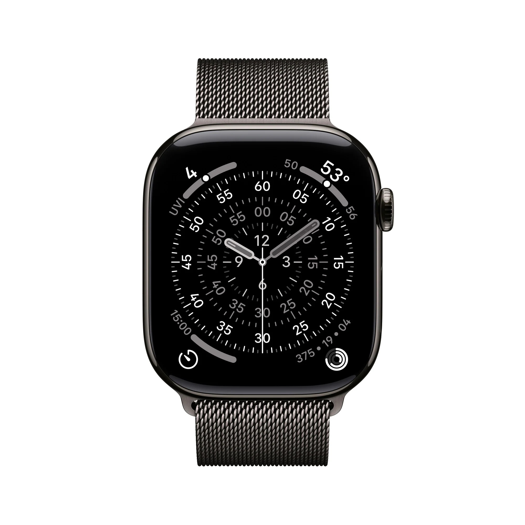 Apple Watch Series 11 Milanese Loop břidlicově šedé M/L * pro zápěstí s obvodem 140–245 mm * korunka Digital Crown s haptickou odezvou * reproduktor/mikrofon Operační systém: watchOS Displej: stále zapnutý LTPO3 OLED Retina, 416×496 pixelů, 1220 mm2, 3...