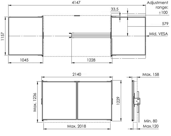 Biele tabule Vogel sú k dispozícii pre tri najbežnejšie veľkosti (interaktívnych) obrazoviek 65, 75" a 86". Vďaka výškovému a hĺbkovému nastaveniu systému je možné biele tabule bez problémov prispôsobiť akémukoľvek typu (interaktívnej) obrazovky.