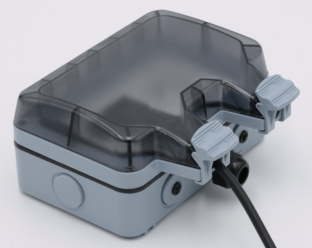 Zásuvka je vodotěsná a prachotěsná, včetně kabelové průchodky PG. Můžete ji tak umístit kdekoliv na zahradě či ve skleníku bez obav, že by došlo ke zkratu při dešti či zalévání.