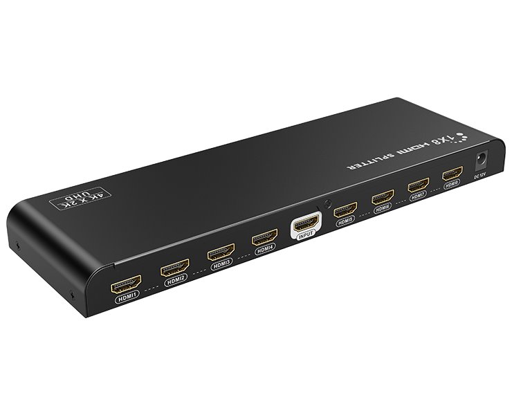 HDMI distribuční rozbočovač z jednoho vstupu na osm shodných výstupů. Podpora rozlišení do 4K × 2K 60 Hz.