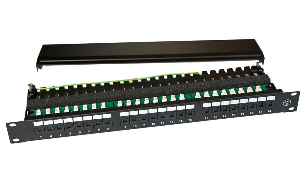 Propojovací panel 19"/1U, 24 portů RJ-45, svorkovnice narážecí (IDC), Cat6 (UTP), nestíněný, narážecí kontakty Krone LSA, celokovová konstrukce. Kontakty jsou na svorkovnici odlišeny barvami podle typu zapojení, a to buď podle T568A, T568B, nebo číselně značeny. Součástí těla panelu je vyvazovací lišta pro pevné připevnění kabelů. Životnost zářezu je 200×, vodič do zářezu AWG 22–26. Zařízení splňuje standardy TIA/EIA 568, EN 50173, ISO 11801.