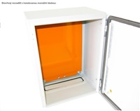 Univerzálny rozvádzač, IP66, oceľový, sivý. Trojvrstvová povrchová úprava (fosfátovanie, máčanie v základnom laku, práškový lak), vymeniteľné dvere, pevná konštrukcia. Odnímateľný kryt káblového prechodu. Rozvádzač je vyrobený z válcovanej ocele o hrúbke 1,5 mm. Štandardy: IEC60529, EN60529/10.91, GB4208-93 Vyhotovenie: dvere - plné, otvárateľné o 110 stupňov, montáž pravá alebo ľavá (užívateľsky vymeniteľné otváranie) zadný kryt - plný bočný kryt - plný horný kryt - plný montážna doska: