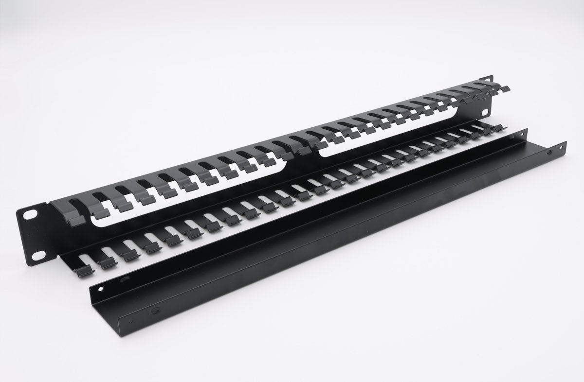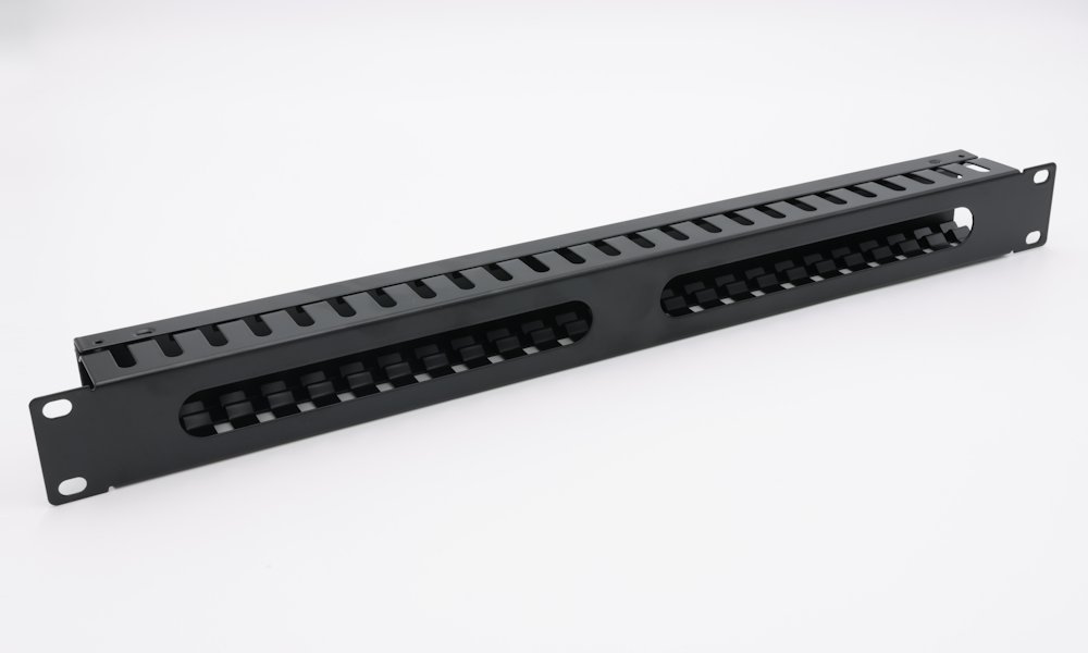 Celokovový vyvazovací panel vhodný pro volné uchycení velkého množství kabelů. Vyráběn je ve variantě 1U a je vybaven krytem kabelů.