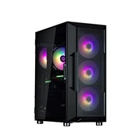 Skříň, Middle tower, bez zdroje, 4× 120mm ARGB ventilátor, průhledná bočnice, 2× USB 3.0, 1× USB 2.0, černá